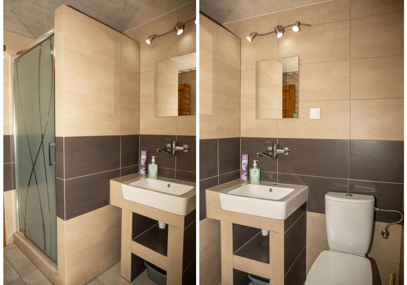 Łazienka wyposażona jest w papier toaletowy, wannę 🛁 lub prysznic 🚿 oraz toaletę, co gwarantuje komfort i prywatność.