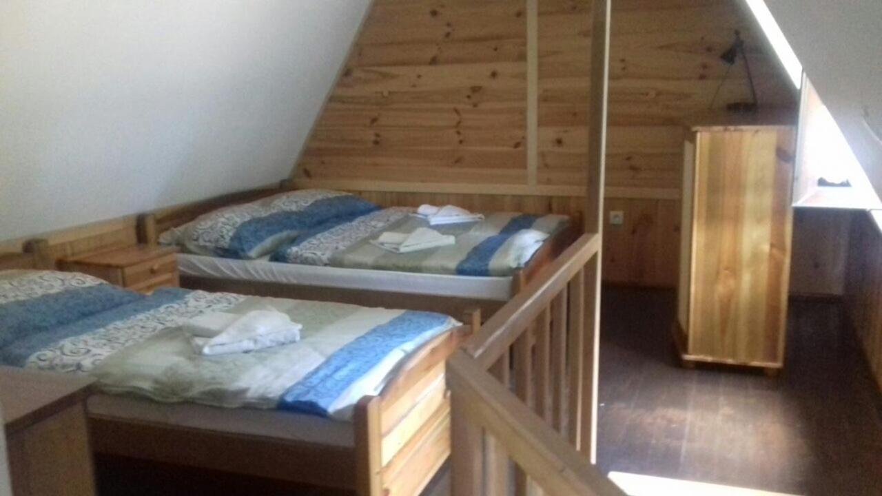 Dom z 2 sypialniami. This holiday home consists of 1 living room, 2 separate bedrooms and 1 bathroom with a shower and a hairdryer. Guests will find a stovetop, a refrigerator, kitchenware and an oven in the well-equipped kitchenette. The holiday home also offers a barbecue. The holiday home provides an electric kettle, a sofa, parquet floors, a flat-screen TV, as well as lake views. The unit offers 4 beds. Dom wakacyjny - 6 osobowy. Powierzchnia pokoju ok.: 9 mkw.